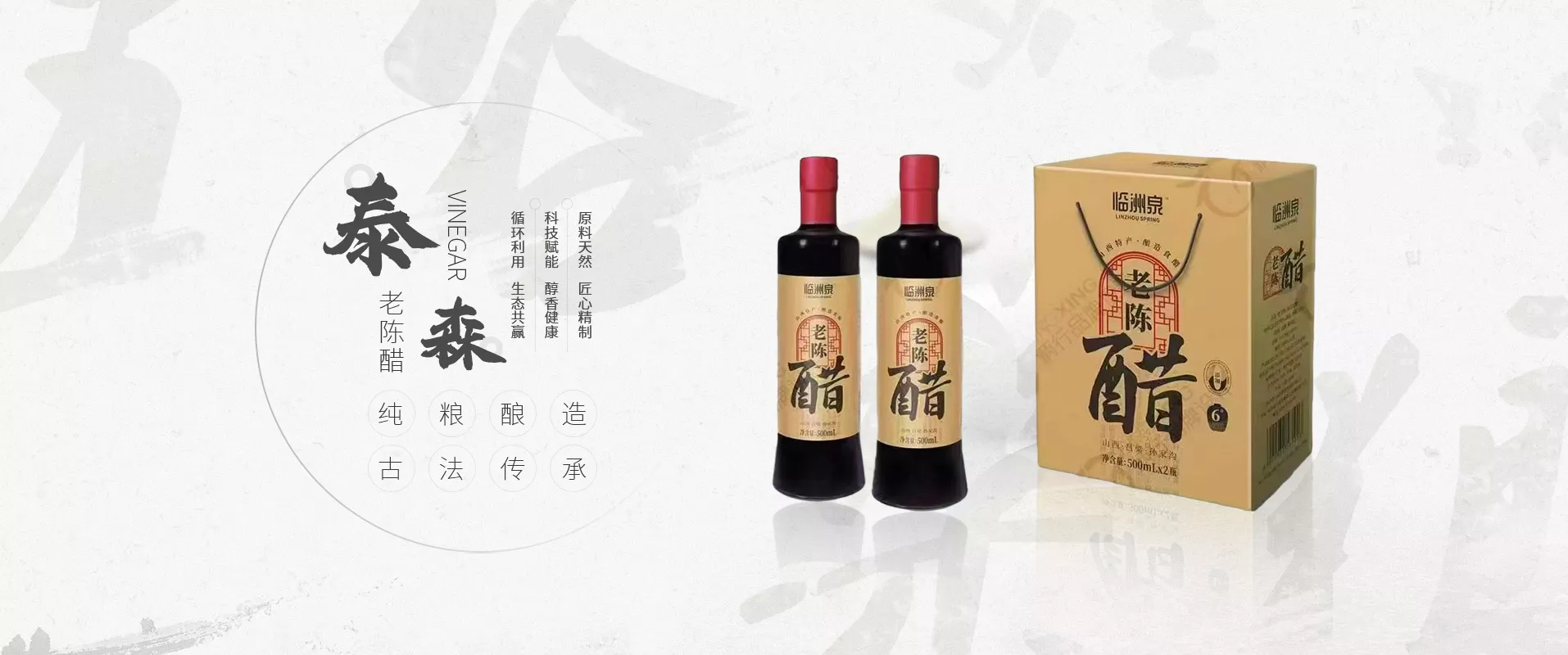 以红枣、高粱、谷糠等原料所制大曲为发酵剂,酿制特色纯粮食醋。